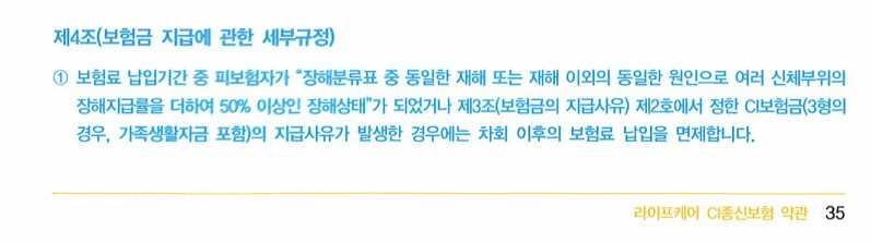 생명보험사의 종신보험의 경우 '장해율'이 50%가 넘으면 납입면제가 됩니다.