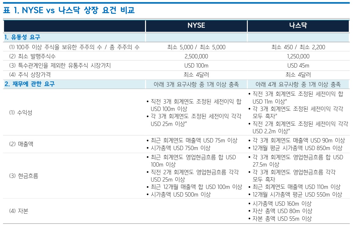 나스닥은 상장요건에 계속기업 여부나 흑자여부등이