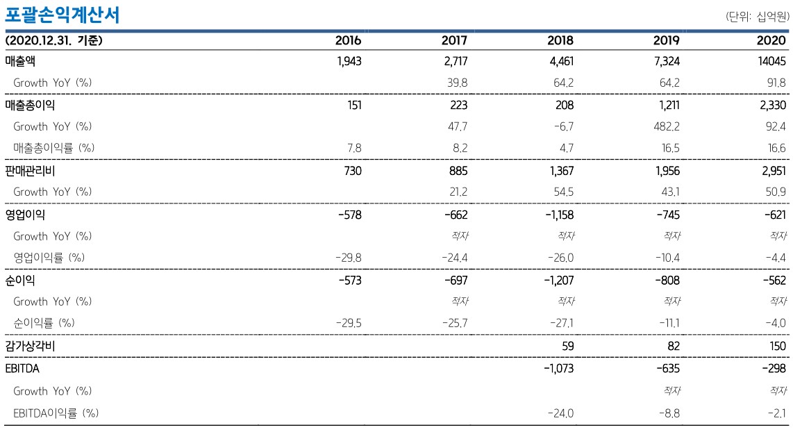손실을 기록했으나, 2019년에 들어서야 쿠팡의 적자는