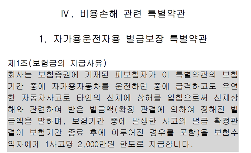 자세하게 확인해보시고 본인 운전자보험 증권을 확인 해 보시는게 좋습니다.