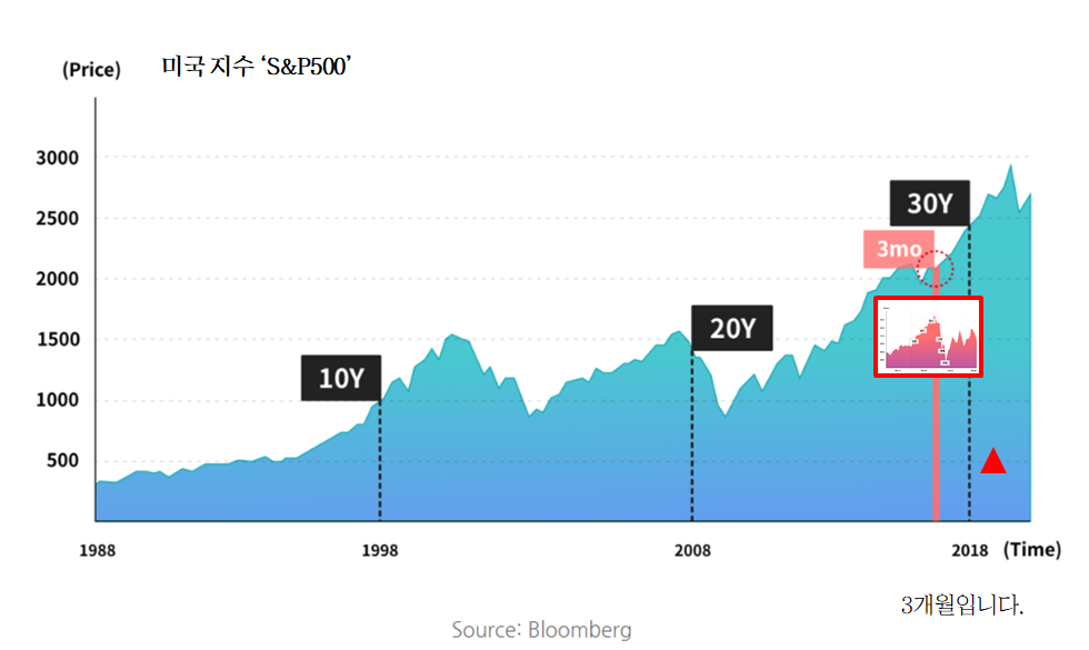장기 우상향 하는 그래프에서 단기적인 하락과 상승에 얽메이지 않고