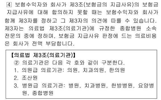 원래 약관에서 규정하고 있는 뜻은, 청구한 내용에 대하여 보험사가 추가적인 자문을 필요로 할 때에는 고객과 보험사가 합의 본 제 3의 병원에서 의료자문을 받아 확정하게 되어 있습니다. 이를 보험금 청구서안의 포괄동의로 넣어 해당 내용을 근거로 보험사가 지정하는 (절차를 간소화시키고 지급을 빠르게 하겠다는 명목으로) 병원에서 의료자문을 받게 되는 것이죠.🏥