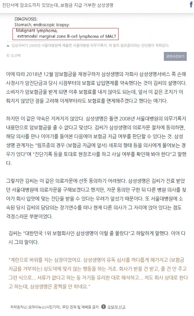 ™ 하지만 늘 염두에 두어야 하는 것은 보험사는 어디까지나 사적 이익을 추구하기 위한 영리기업이며 비영리 봉사단체가 아니라는 것입니다. 고객이 청구하지 않아서 몰랐던 돈을 먼저 지급하겠다고 발벗고 나서지 않고, 분쟁과 법정공방 뒤에는 거대 자본이 있기에 일반 소비자들이 억울한 일을 당하기도 합니다.