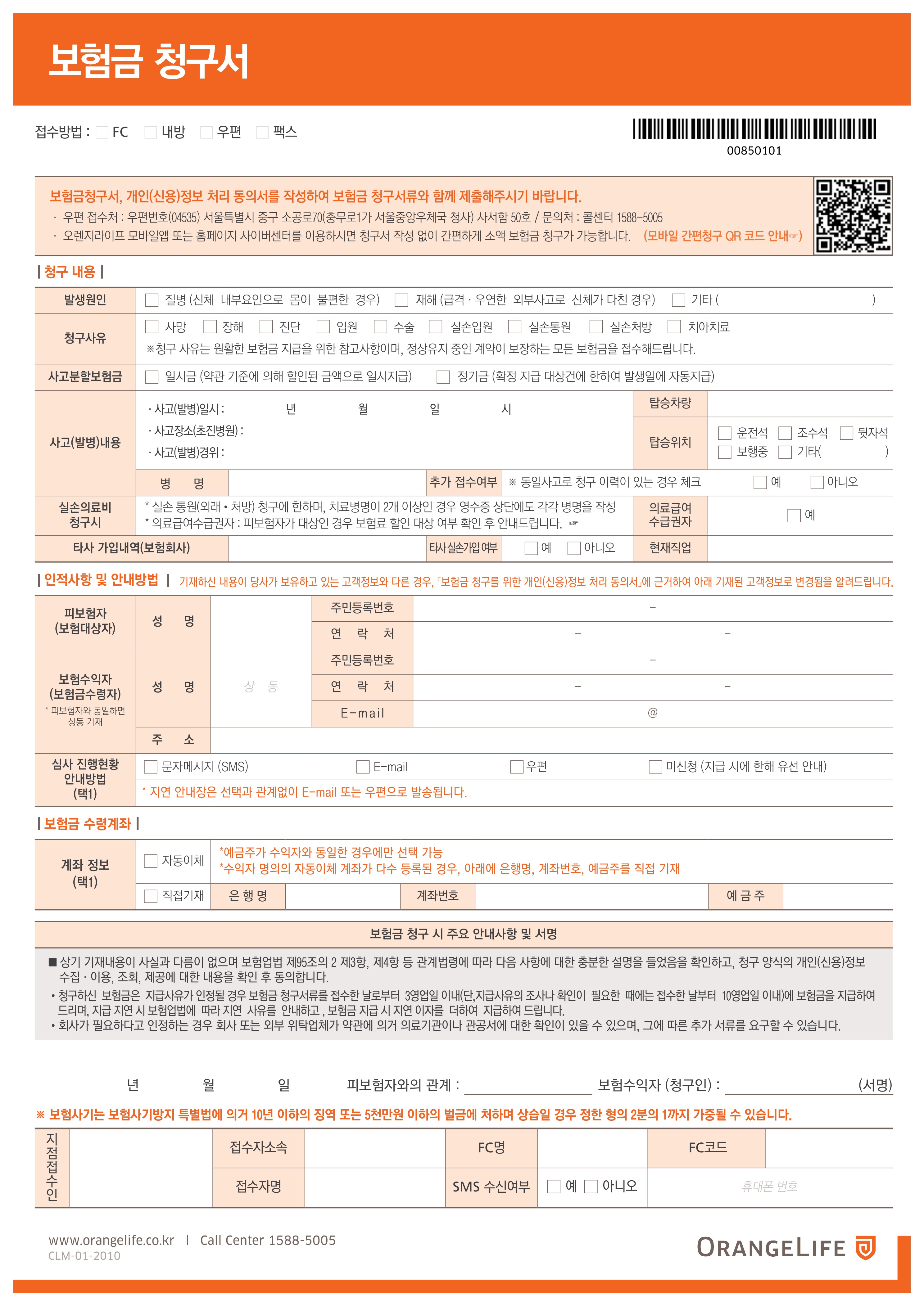 보험금 청구서의 기본 양식은 1) 보험금 청구서 2) 청구를 위한 개인정보 처리동의서 두가지가 한 세트입니다