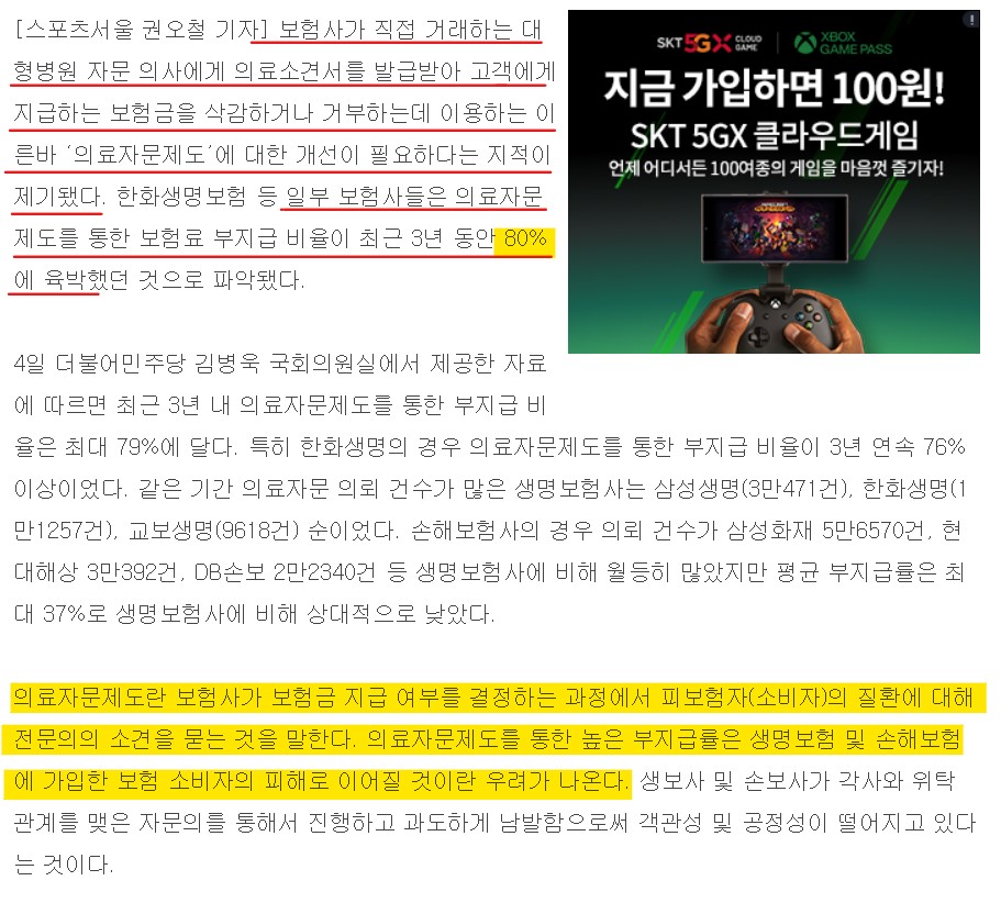 보험사의 자체 의료자문 시스템에 대해서 피해자가 분명히 존재하고, 그 액수가 상당합니다. 특정 보험사는 한 병원과 제휴를 맺어 1일 10건이 넘는 의료자문을 진행하는 경우도 있었죠. 진단 코드를 바꾼 횟수가 매우 많습니다.↗