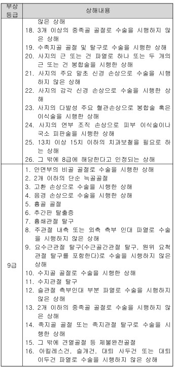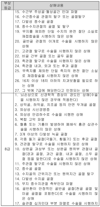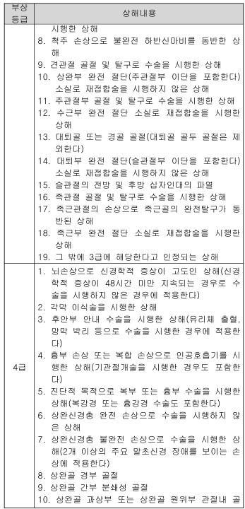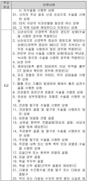 세가지 상황에서 지급한다고 명시되어 있으며, 이를 각각 상해 부상등급의 급수에 따라 지급한다고 나와있습니다.