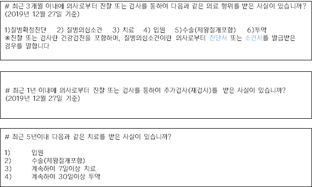 3) 3개월 내 입원, 수술, 또는 추가검사소견의 사실이 있는지☑