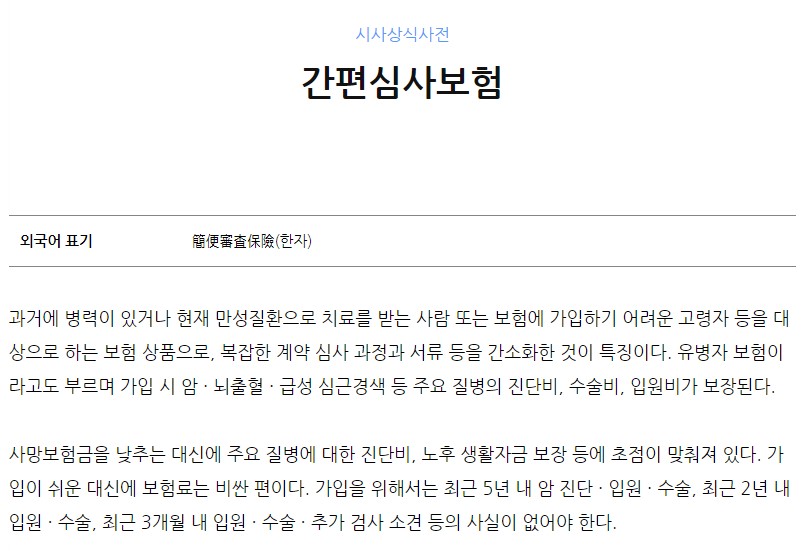 즉, 간편보험은 보험료가 일반 보험에 비해 비싼대신 보험 가입이 어려운 사람들을 대상으로 보장을 해주는 형태의 보험인 셈이죠.🩺🛡