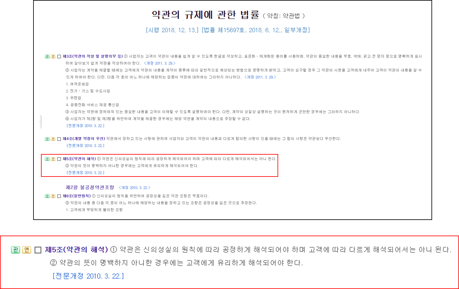약관법 제 5조 2항 '작성자 불이익의 원칙'은 "약관의 해석이 모호할 경우 계약자에게 유리하게 해석한다"는 원칙입니다.