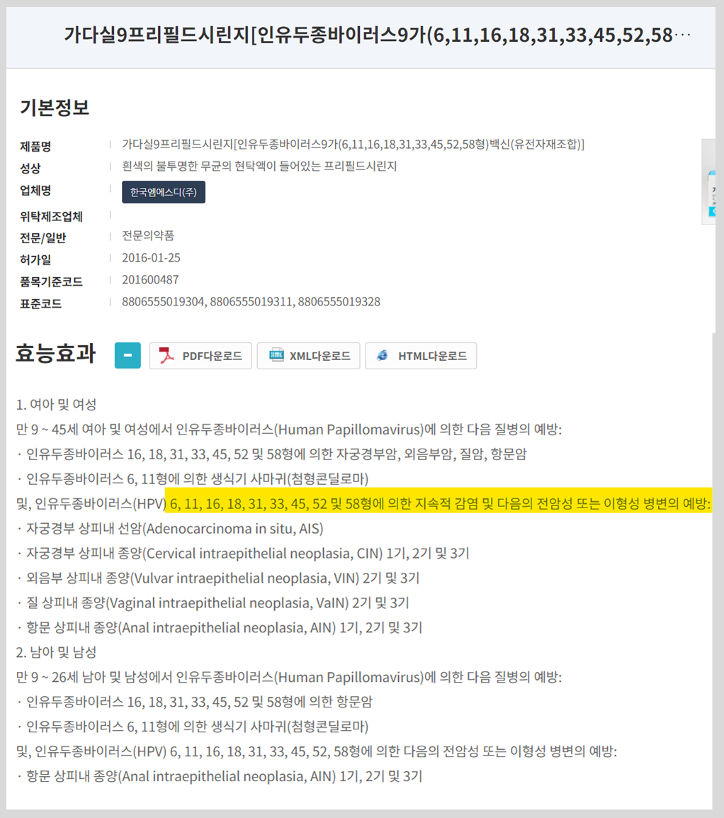 가다실의 효능 중 하나는 지속적 감염의 예방이라고 정확히 명시되어 있고