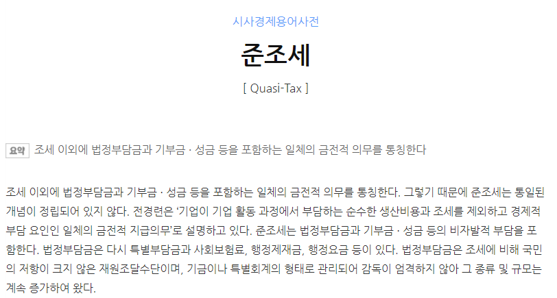 조세 이외에 법정부담금과 기부금, 성금 등을 포함하는 일체의 금전적 의무를 통칭하죠💸