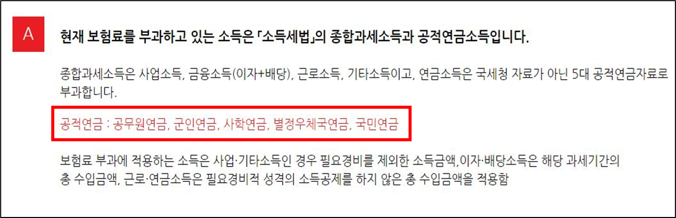 이자, 배당, 세액공제를 받은 상품 (세제적격상품이라고 부릅니다), 심지어 국민연금과 공무원연금도 말이죠.