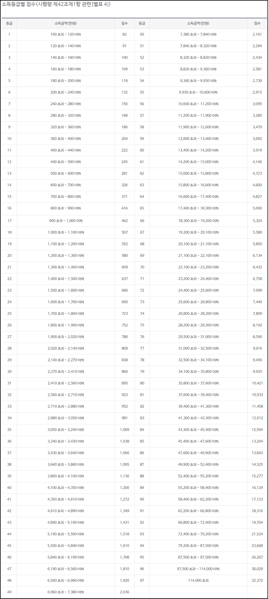 (글 마지막에 소득의 등급과 재산 등급, 자동차 점수 등급표 까지 첨부했습니다.)