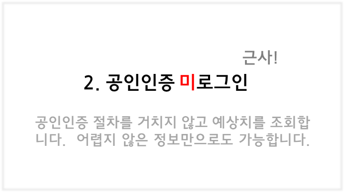 2️⃣ 공인인증을 하지 않고 조회하는 방법은 간단한 정보기입만으로 가능하며 즉시 예측이 가능합니다. 하지만 공인인증을 거치는 절차에 비해 덜 정확한 편입니다.