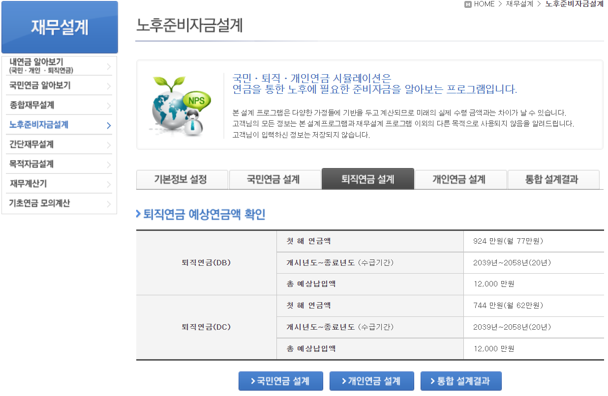 퇴직연금 예상 연금액을 확인하면 됩니다.
