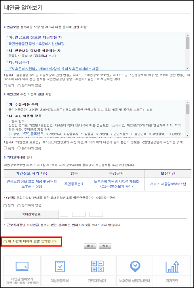 국민연금은 곧바로 조회가 되지만