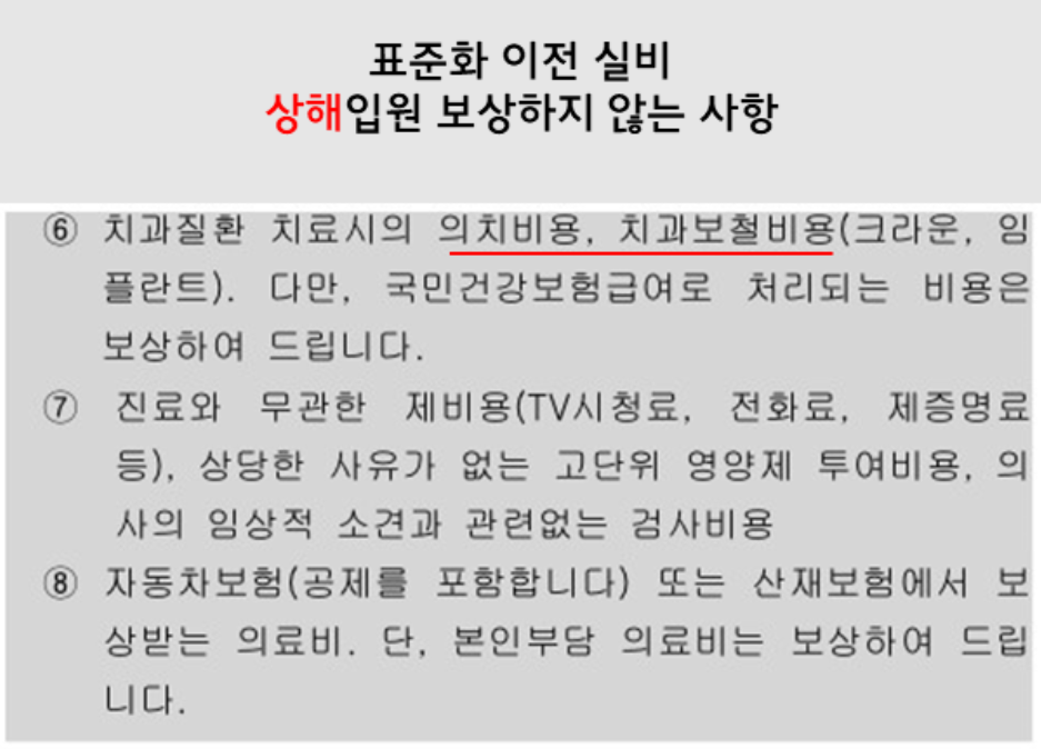 보철치료는 상해와 질병 모두 안됩니다.