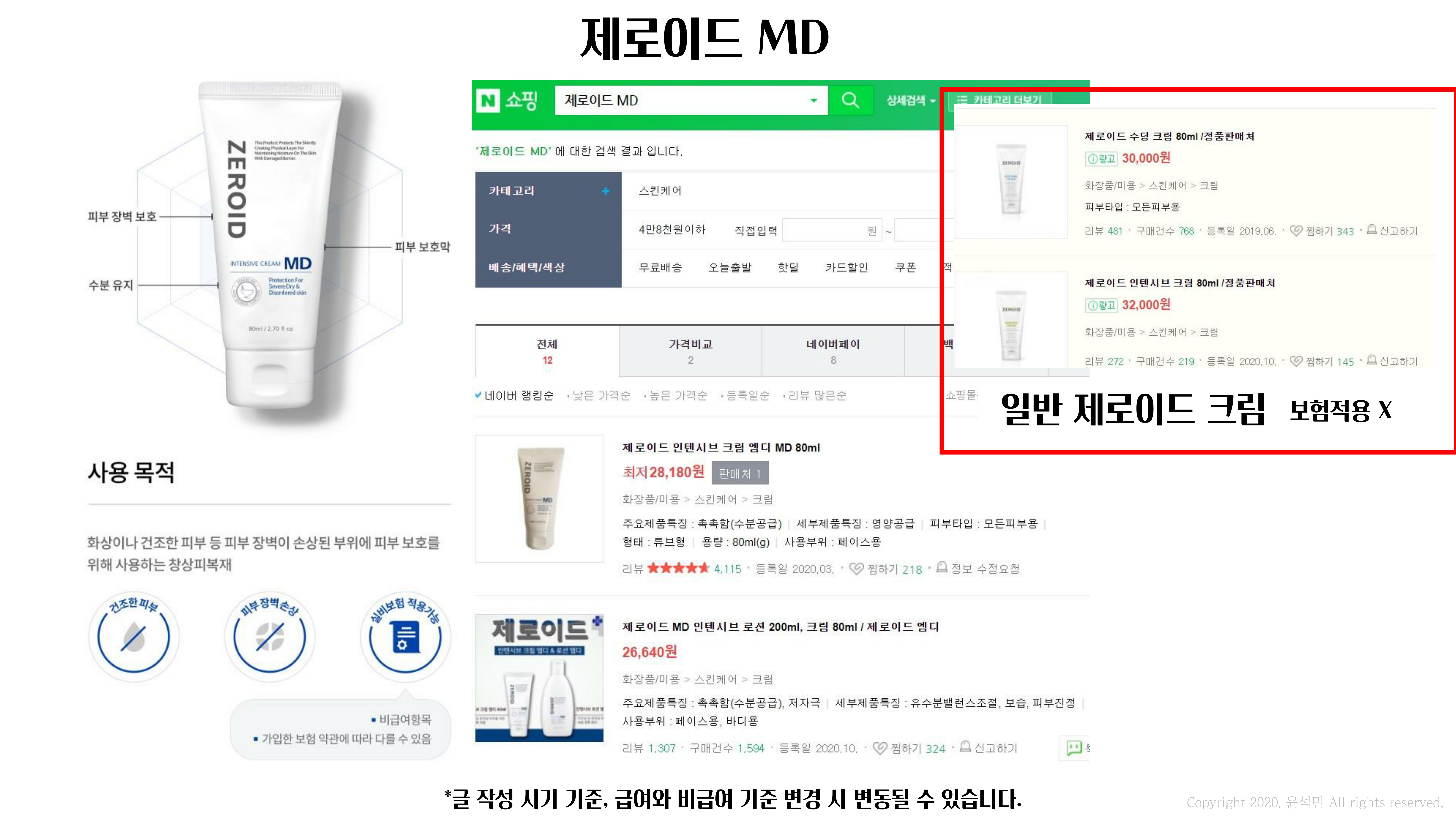 (진료비세부내역서상 보습크림의 비급여코드가 들어가 있습니다.)