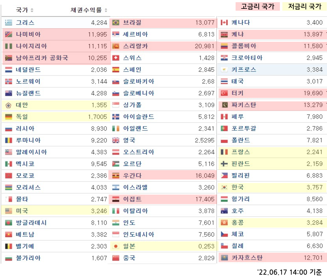 경제가 성장해 튼튼해진 나라의 금리는 낮고, 후진국일수록 높습니다.