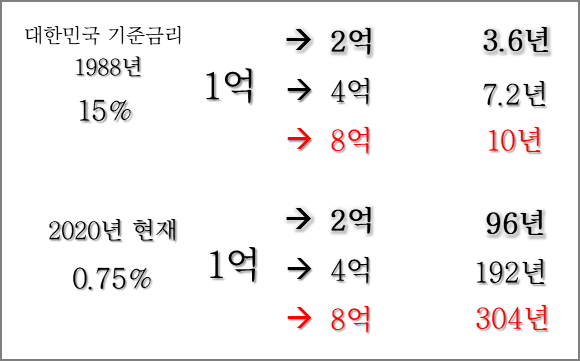 과거 폭팔적인 경제성장을 이루던 때는 금리도 높아서 돈을 쌓아두는 '저축' 만으로도 가정경제활동에 부족함이 없었습니다.