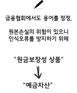 장기적으로 원본손실의 위험이 있으니 인식오류를 방지코자 원금보장성 상품에서 예금자산으로 바꾸자는 말이죠.