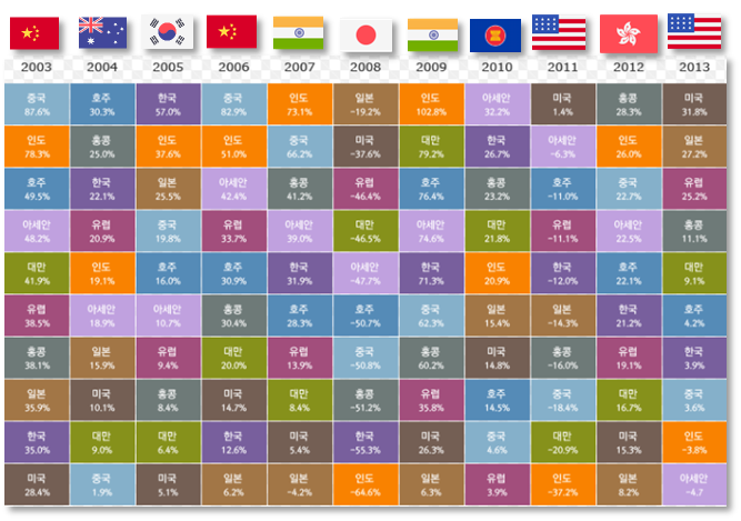 이러한데 강대국이나 신흥국들은 더 하락장에서의