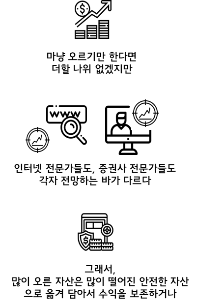 경제가 활황의 조짐을 보이면 공격적 투자자산으로 적극적으로 이동하는 방법도 있습니다.