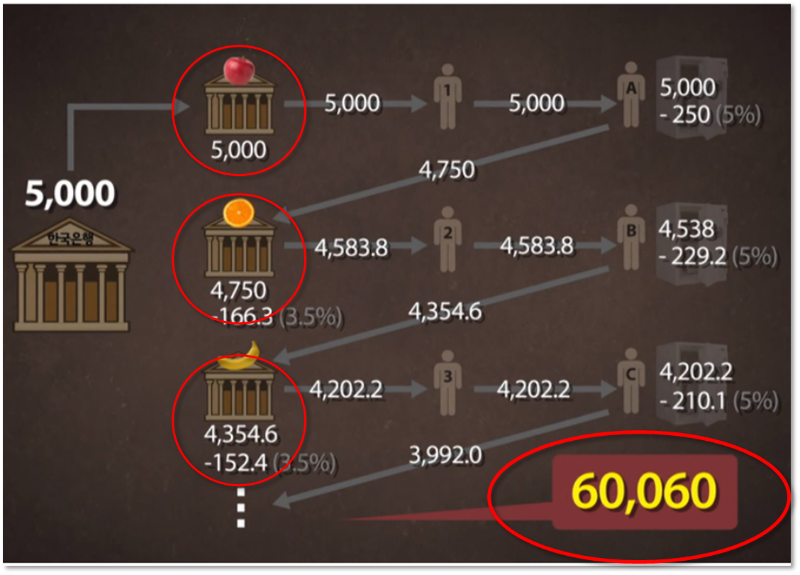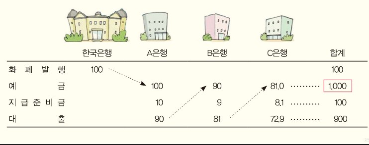가령 지급준비율이 10%라고 할 때, 100만원이