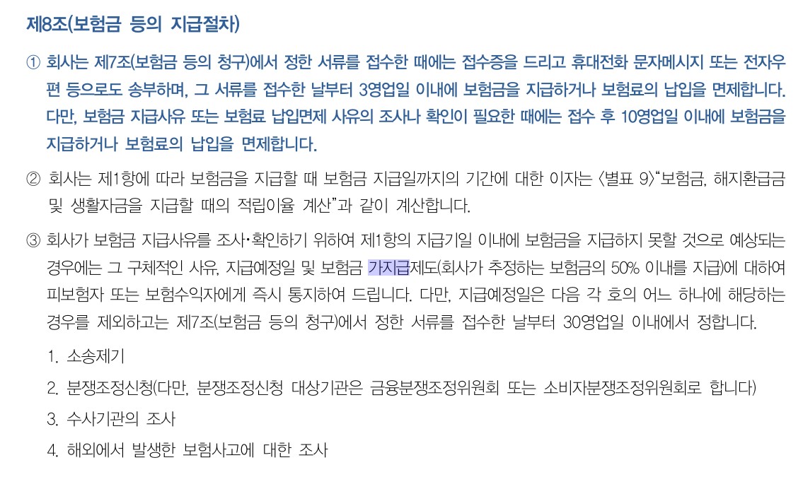 이러한 경우에 대비해 보험약관을 살펴보면 보험금 가지급제도라는 것이 있습니다.