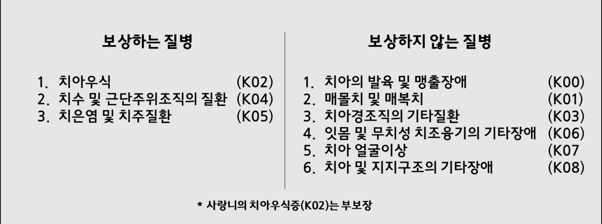 단, 사랑니의 치아우식증(K02)이 생겨도 사랑니가 면책이기 때문에 보장되지 않습니다.