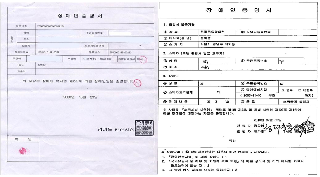 병원에서 장애인증명서를 발급받고