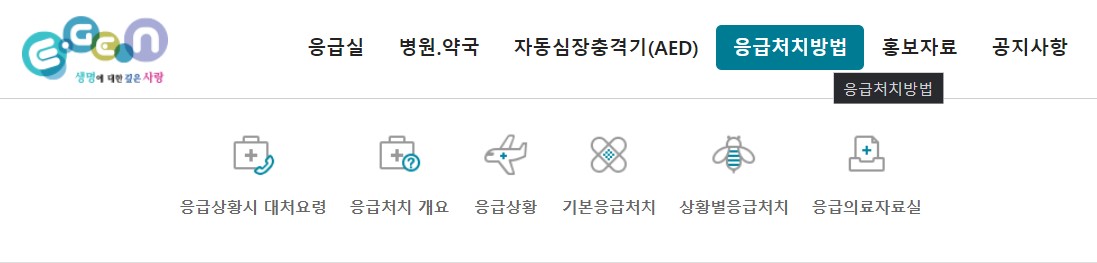 사이트에는 다양한 응급 관련 정보가 정리되어 있습니다.