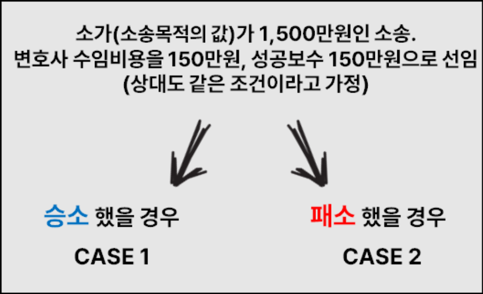 상대방도 나와 같은 조건으로 가정하여 승소와 패소를 나눠 살펴봅니다.
