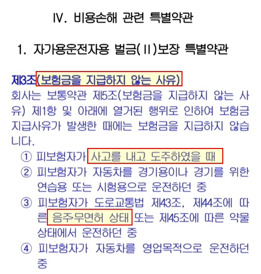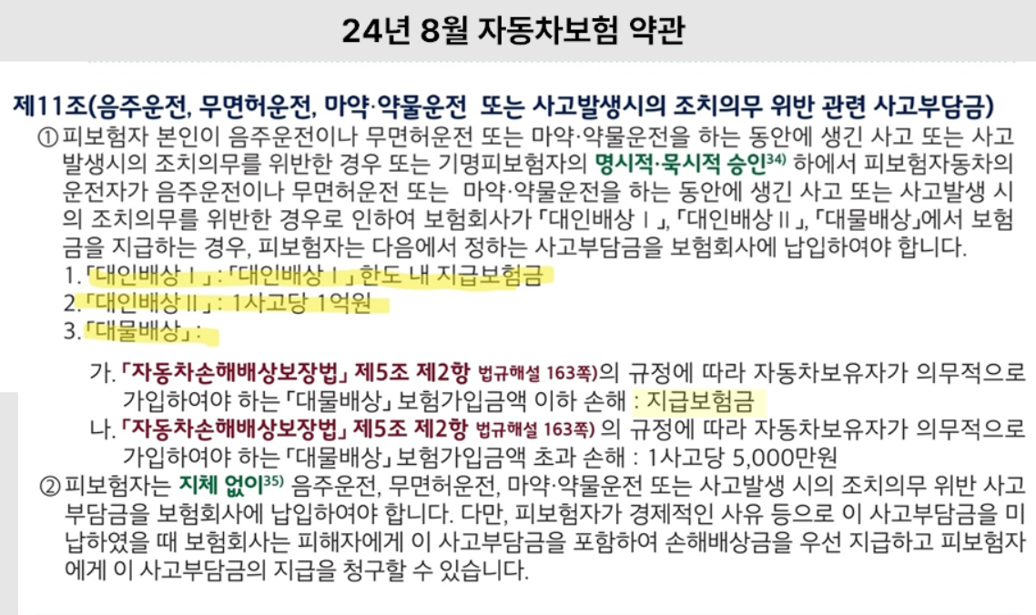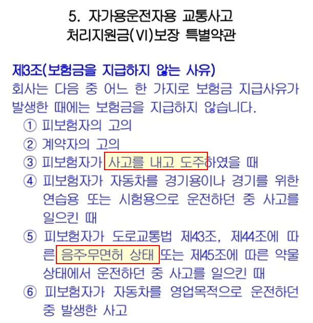 1) 음주운전,무면허·뺑소니는 일반적인 자동차보험 처리가 되지 않는다