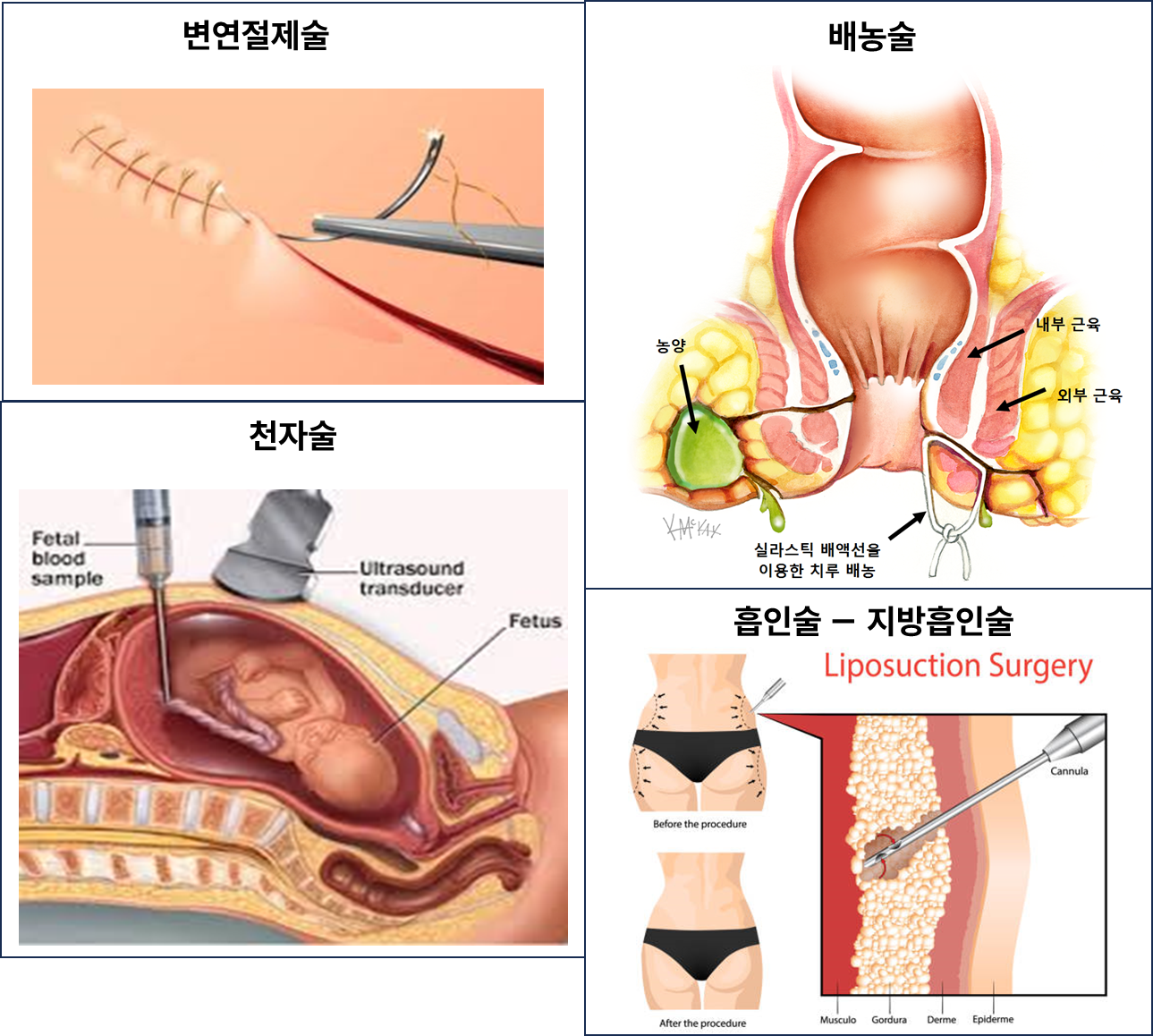 흡인술 : 병소부위의 기체나 액체 따위를 빨아들이는 것 (수술 비해당)