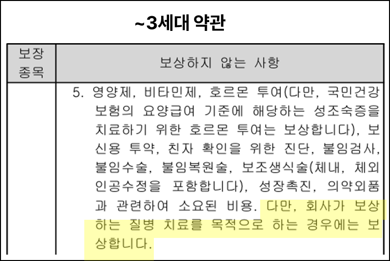 비급여 영양제 청구에 있어서는 약관의 내용이 1~3세대와 4세대 두 그룹으로 나눠집니다.