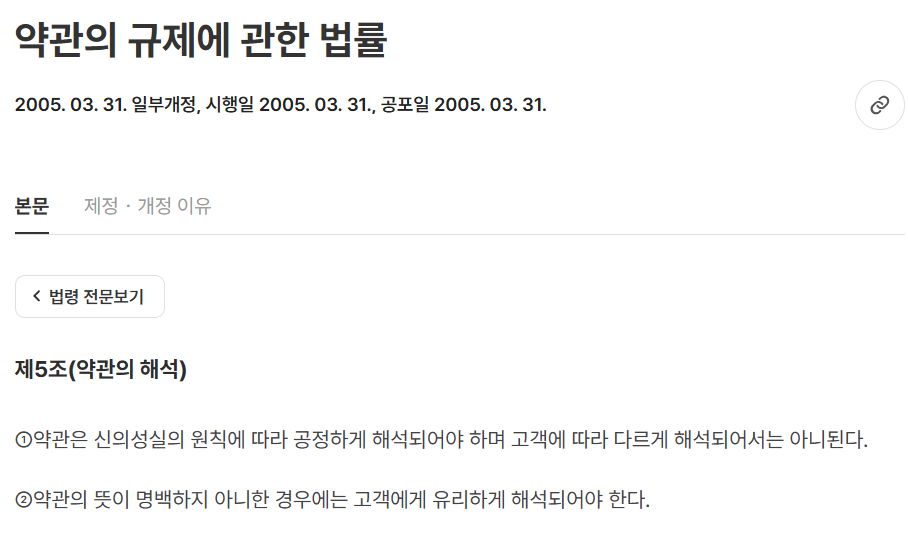 약관 규제에 관한 법률 제 5조 2항 (대법원 2005.10.28 선고 2005다35226 판결)