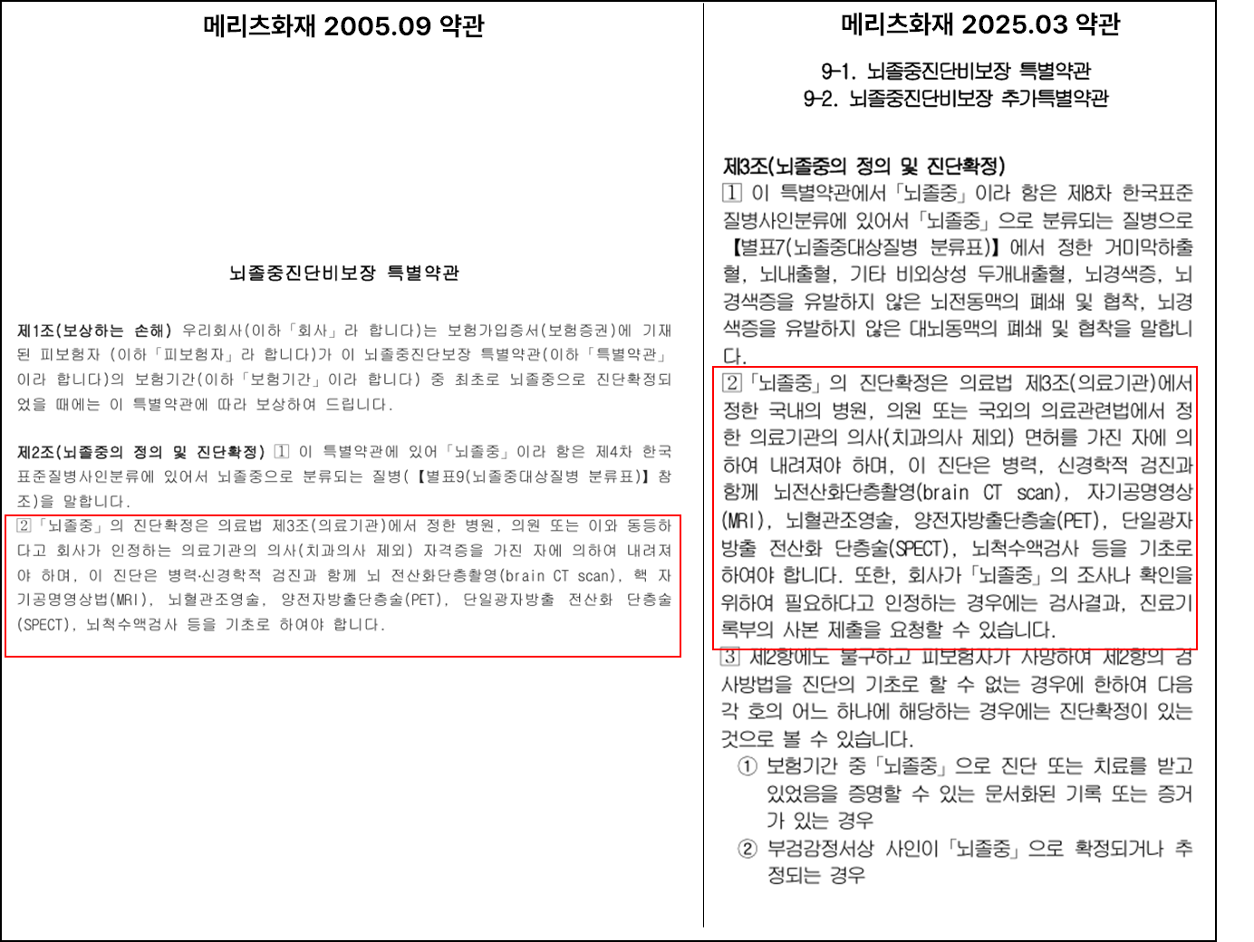 뇌졸중 특약의 과거와 현재 약관에서 달라진게 있다면