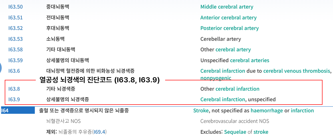 🧠분쟁이 가장 많은 뇌경색, 그 중에서도 열공성 뇌경색(I63.9, I63.8)이 바로 그것입니다.