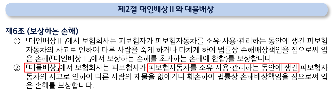 반대로 자동차보험 약관에서는 다음과 같은 내용을 확인할 수 있어요.