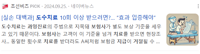 근골격계 통증을 완화하는 데 탁월하다는 평가를 받아왔지만, 진료비가 높고 반복 빈도가 잦아 보험사 입장에서는 ‘관리 대상’이 될 수밖에 없는 항목입니다.