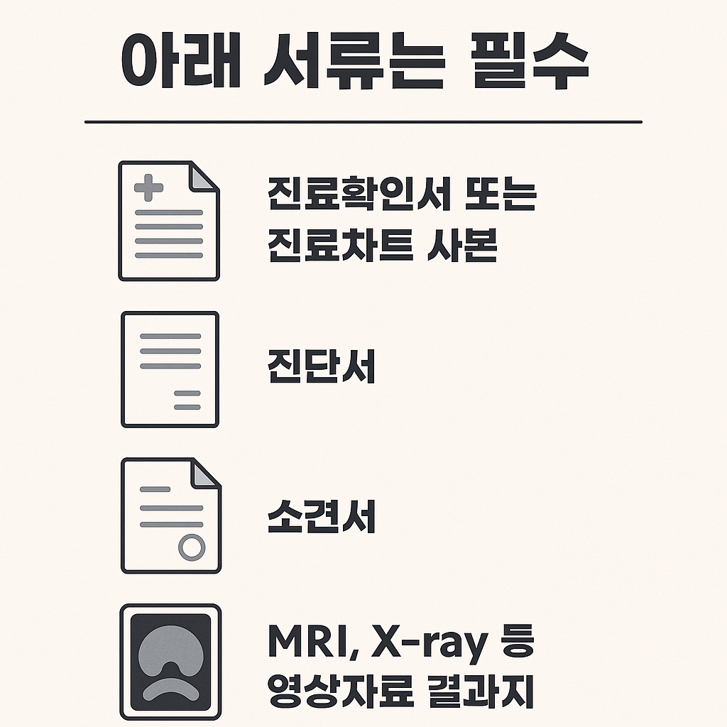 - MRI, X-ray 등 영상자료 결과지 (첨부 가능 시 매우 유리)