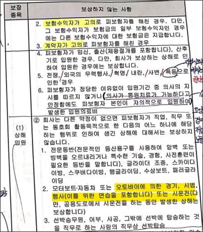 "가입 당시에는 '오토바이사고 제외' 라는 문구가