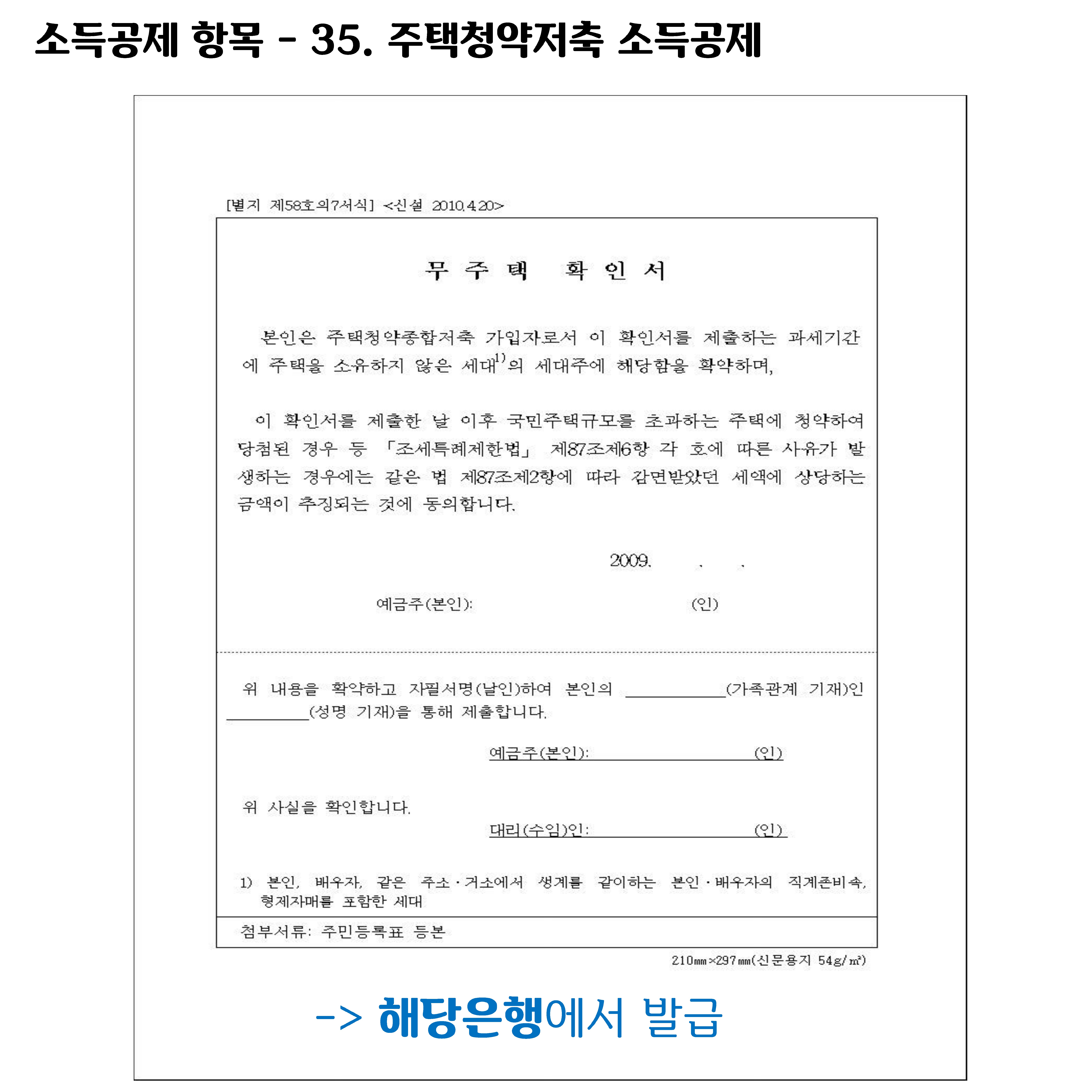 해당은행에서 '무주택 확인서'를