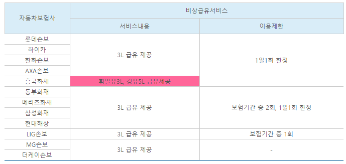 흥국화재(휘발유는 3L, 경유는 5L 제공)를