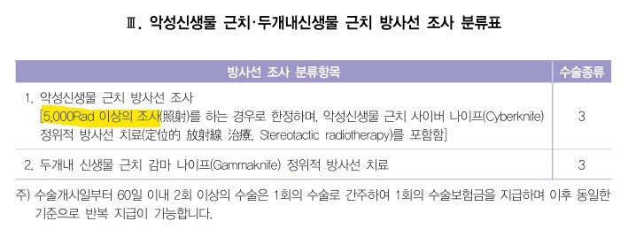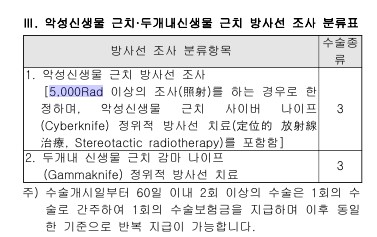 5,000Rad/5,000cGy 만 넘으면 3종 수술을 1회 받은 것으로