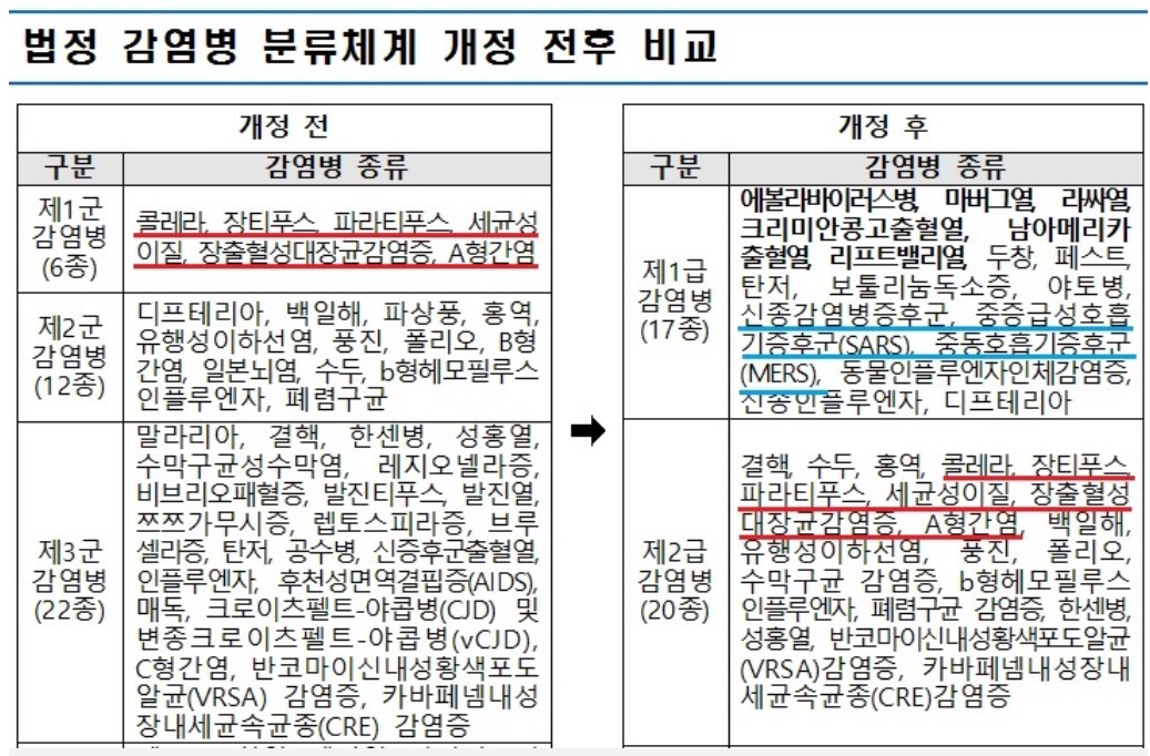 이 1군 감염병이 여러차례 수정되어 오다가,
