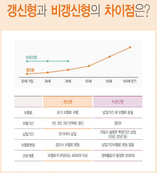 많은 고객들이 갱신형 보험과 비갱신형 보험의