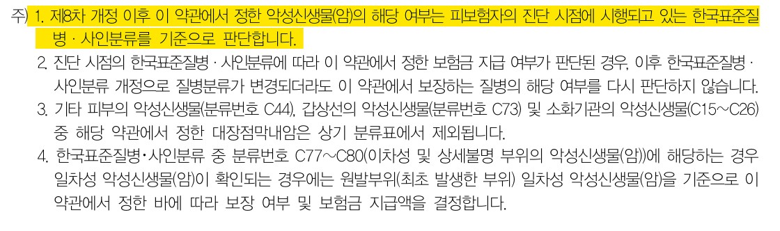 최신의 “질병코드”를 기준으로 하도록 약관이