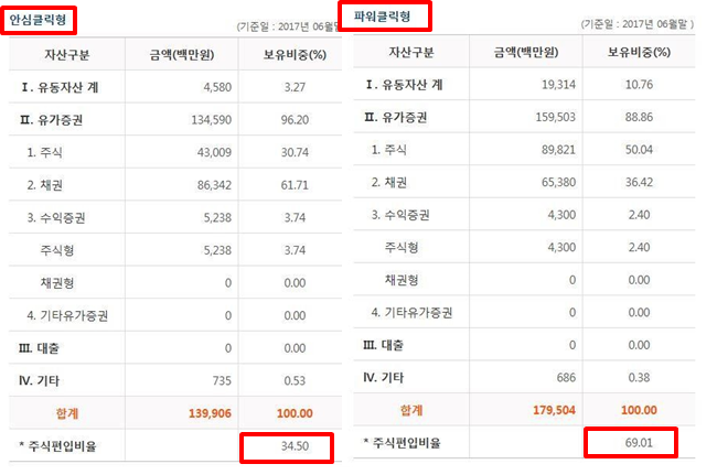 펀드를 추가했고, 혼합형 펀드가 아닌